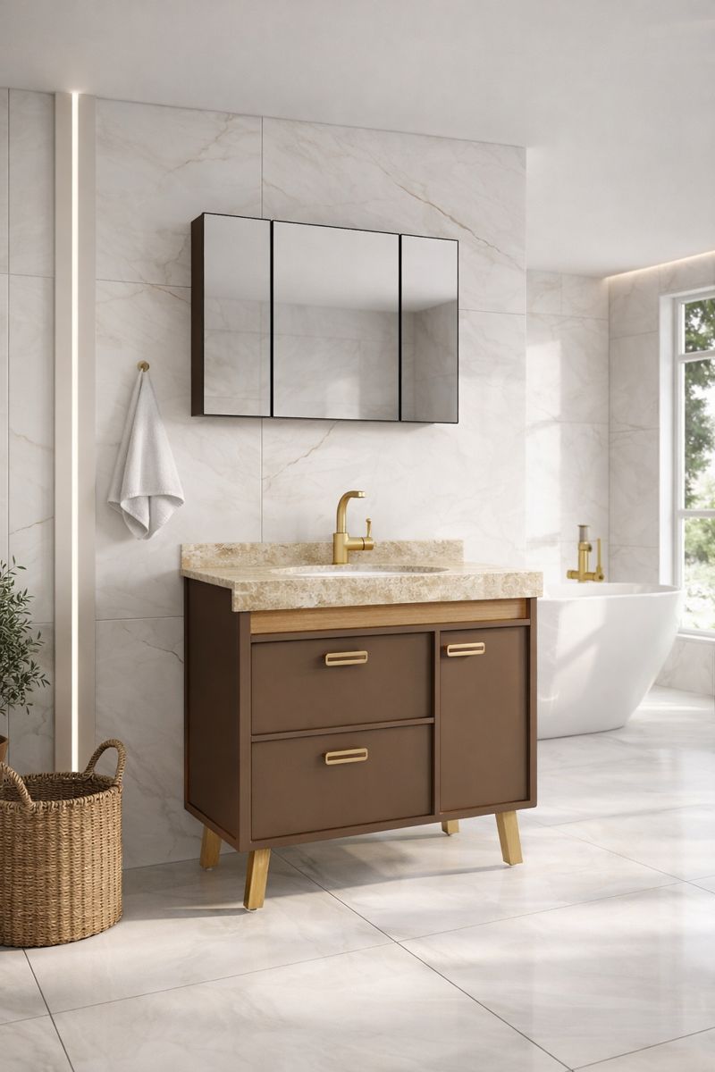 Este balção para banheiro combina elegância e funcionalidade em um design contemporâneo que valoriza qualquer ambiente. Com acabamento em tom marrom sofisticado, ele transmite aconchego e modernidade, harmonizando perfeitamente com banheiros clássicos ou modernos.